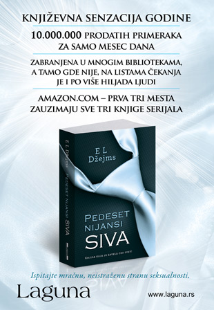U izdanju Lagune u četvrtak, 5. jula, u svim knjižarama Delfi, Laguninim klubovima čitalaca kao i svim bolje snabdevenim knjižarama pojaviće se književna senzacija godine roman „Pedeset nijansi – Siva“ E. L. Džejms.