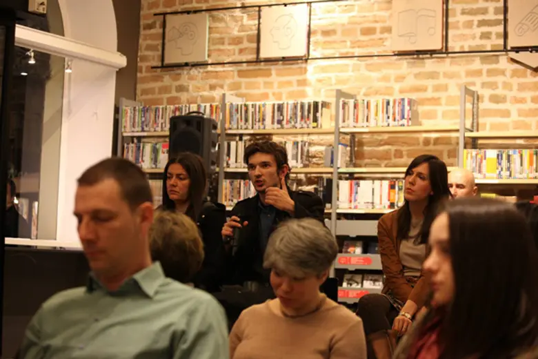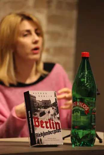 Razgovor o strukturi romana i reminiscencije na njegove pretke u svetskoj književnosti bio je do te mere živopisan i šarolik da je Velisavljević imao dovoljno prostora da se dotakne i političke angažovanosti „Berlin Aleksandrplaca“ a da ta tema bude podjednako privlačna i jezgrovito dočarana okupljenom auditorijumu.
