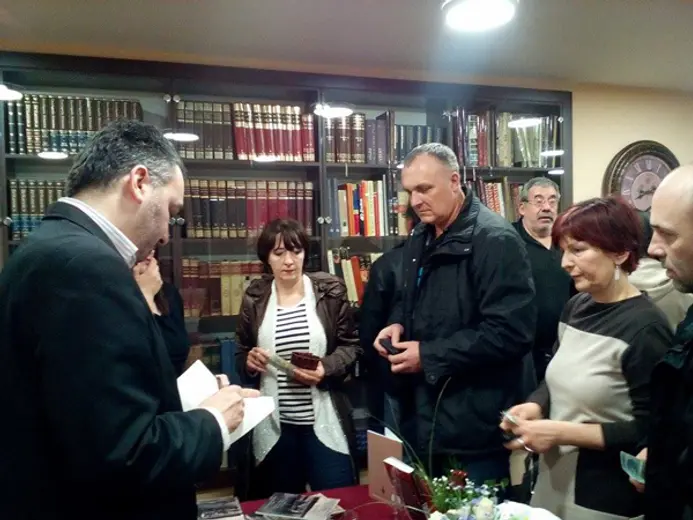 Gosta je najavila bibliotekarka Vesna Proković. Sa piscem iz Niša razgovarala je Danijela Vulićević, direktorka lapovačke biblioteke. Dotakli su se najznačajnijih predstavnica dinastije Obrenović i njihovog uticaja na emancipaciju srpskih žena, hrabrih i vrednih žena sa obe strane Save, buntovnica, grešnica, umetnica i žena koje su bile žrtve porodičnog nasilja, i neminovno njihovih ljubavi, snova, ambicija i grešaka. Posetioci su se uključili u razgovor i svojim komentarima začinili jedan uspešan književni program.