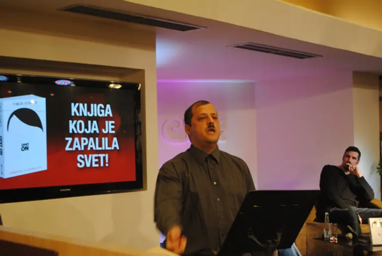 Da bi promocija dobila pravo autentično finale „pojavio“ se Adolf Hitler (glumi ga Milan Ilić) da sa govornice održi jedan od njegovih vatrenih govora koji i nisu morali da imaju smisla, ali su bili tako „zapaljujući“ da su slušaoci spontano reagovali ovacijama, naravno ne i publika u kafeu.