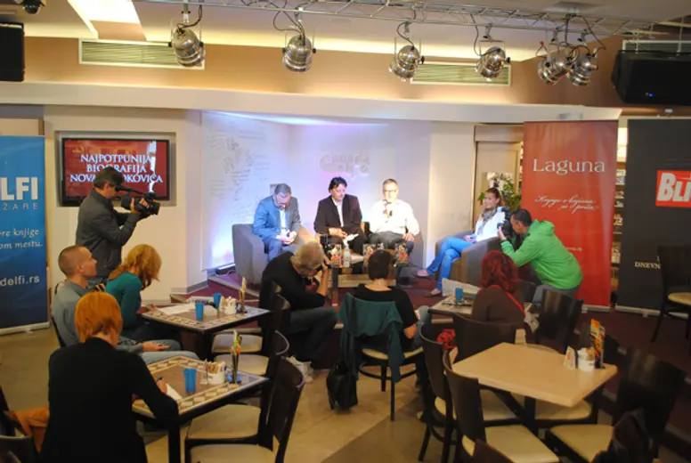 O neautorizovanoj biografiji srpskog tenisera na konferenciji za novinare govorili su direktor Lagune Dejan Papić, direktor plasmana Ringier Axel Springera Milan Subotić i muzičar i novinar Vladimir Đurić Đura.