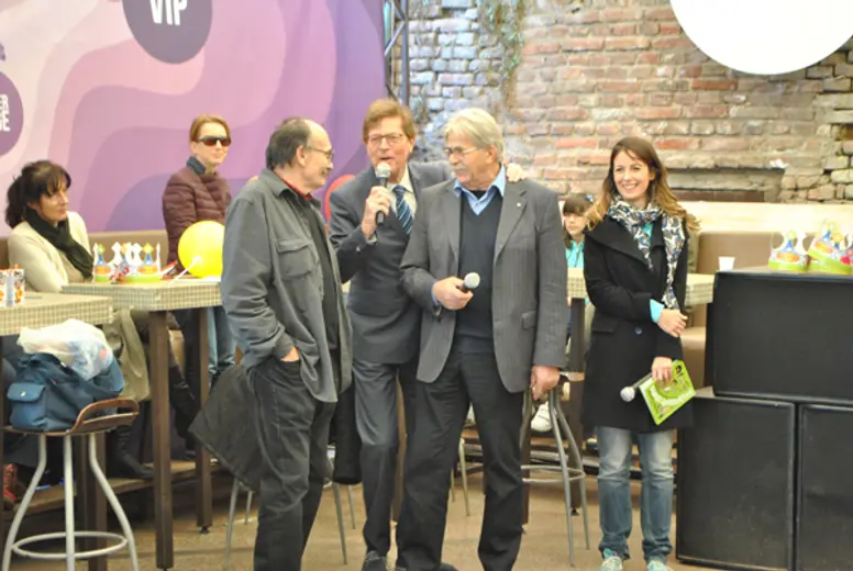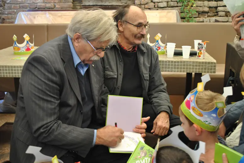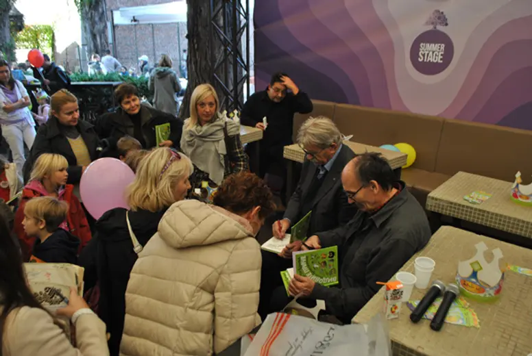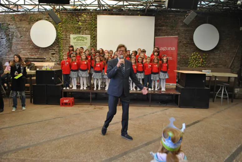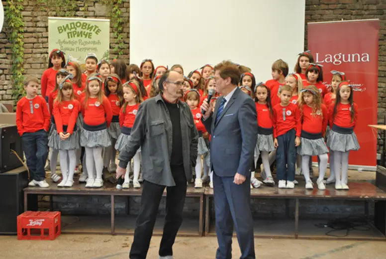 Minja Subota, poznati televizijski autor i voditelj, prisećao se svojih ranijih iskustava sa Ljubivojem Ršumovićem i na sebi svojstven način koji mališani obožavaju vodio promociju i zabavljao sve prisutne.