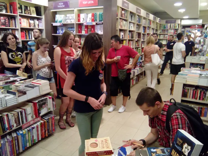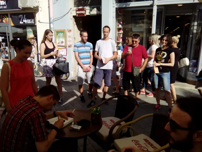 Marčela je na potpisivanju dočekala armija obožavalaca, koji su iskoristili priliku da sa omiljenim muzičarem i piscem razmene utiske o njegovom radu. Među prisutnima bilo je i mnogo posetilaca Exita, iz čitavog regiona, koji su želeli da upoznaju Marčela i dobiju njegov potpis. On je napravio sjajnu atmosferu i istakao da ne bi bio to što jeste da nema ljudi koji poštuju njegov rad.
