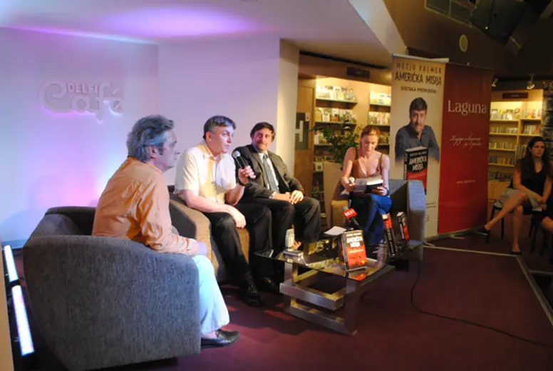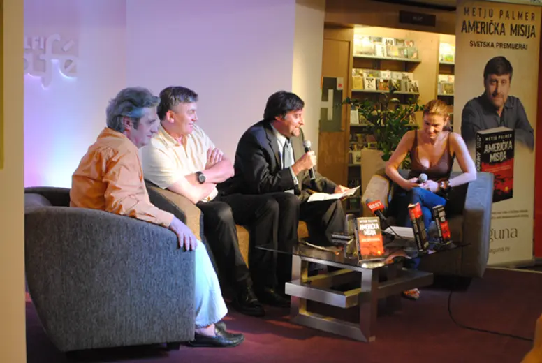 O knjizi „Američka misija“ na promociji su govorili dramaturg Nenad Prokić, novinar i pisac Milomir Marić i autor Metju Palmer.