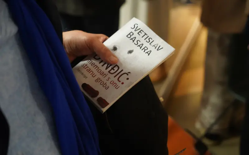 U prepunoj Bukmarker kafeteriji knjižare Delfi SKC, 12. marta, na dan ubistva premijera Zorana Đinđića, održana je promocija nove knjige Svetislava Basare „Đinđić: memoari s onu stranu groba“.