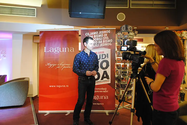 Igor Arih je svoju knjigu predstavio na promociji u knjižari Delfi u SKC-u i o njoj razgovarao sa Branimirom Brkljačem i u isto vreme demonstrirao osnovni princip na kome počivaju dinamične komunikacije i sama knjiga.
