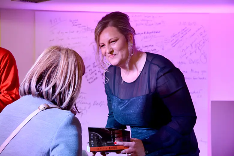 Na samom početku razotkrili smo prisutnima tajnu o imenu autorke. Iza pseudonima Keri Čin nalazi se zapravo naša sugrađanka Dragica Bradonjić, koja je to smislila u naletu mašte još pre osam godina, kad je uslov za objavljivanje njenih kratkih ljubavnih romana bilo da ne otkriva svoje pravo ime. Keri Čin joj se baš dopalo i odlučila je da ga zadrži i prilikom objavljivanja ovog serijala – knjiga „Nedostojna“ prvi je od pet nastavaka – što je roman sa domaćim likovima i lokalitetima učinilo specifičnim.