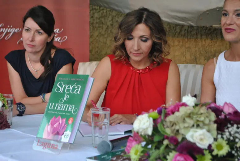 U prisustvu brojnih zvanica iz javnog života, među kojima su mogli da se vide muzičar Kiki Lesandrić, glumica Katarina Radivojević, manekenka Bojana Barović i drugi. Promociju knjige „Sreća je u nama“ podržale su kompanije L’Oreal Paris i Naše zrno.