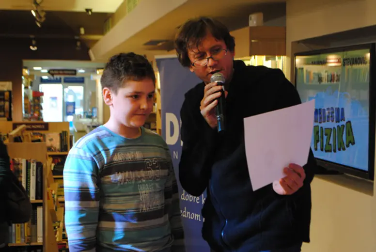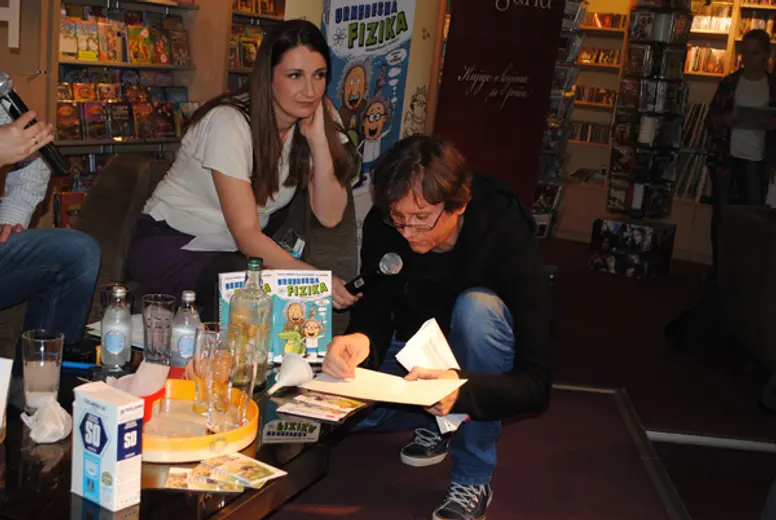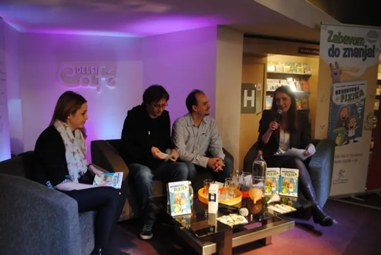 Uz priču i šalu i obilje eksperimenata učesnici promocije su svima približili ovu neobičnu knjigu. U izvornom obliku knjiga je predstavljala zbirku eksperimenata iz fizike koje je zapisao naučnik i dugogodišnji profesor Svetislav Paunović. Rukopis su potom preuzela dva izvanredna pisca za decu, Branko Stevanović i Igor Kolarov, i preuredili ga tako da bude neodoljivo zabavan čitaocima svih uzrasta. Ilustracije Ane Petrović predstavljaju dodatni sloj humora koji je, uz veseli dizajn knjige, opravdao atribut „urnebesna“ u naslovu.