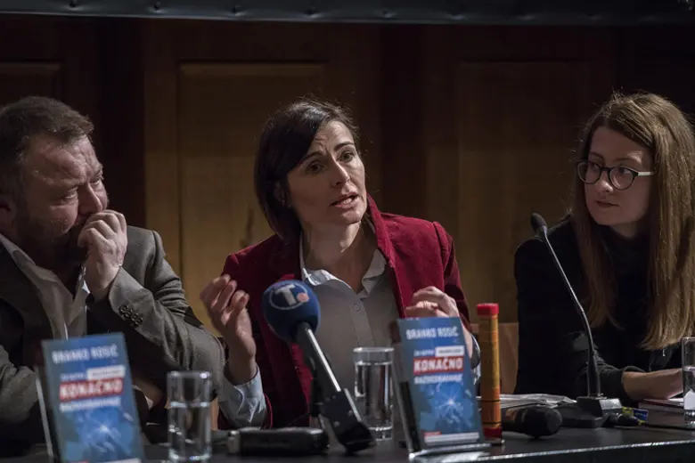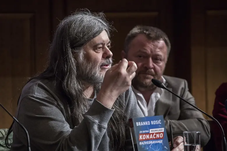 Na kraju se prisutnima obratio i autor Branko Rosić koji je odgovorio na pitanje o kritičkom odnosu prema medijima. „Naravno, ja sam zaposlen u medijskoj kući i dobro poznajem taj svet. Da sam arheolog, verovatno bih pisao o nekom Indijani Džounsu iz Vrčina“, rekao je Rosić i napomenuo da mu je velika čast što tako pametni ljudi govore o njegovom romanu.