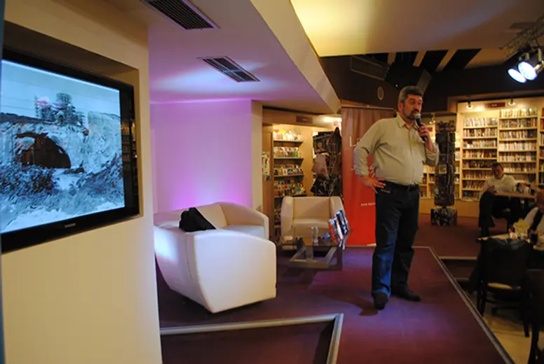 Pred mnogobrojnim znatiželjnicima prikazane su najizražajnije fotografije koje je autor objavio u knjigama „Beograd ispod Beograda“, „Masonski simboli u Beogradu“, „Tajna Novog Beograda“ 1 i 2 i romanu „Grad tajni“.