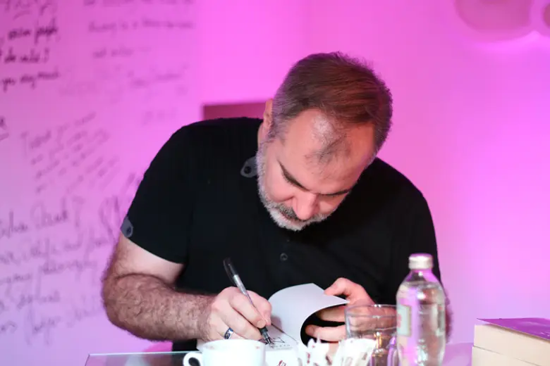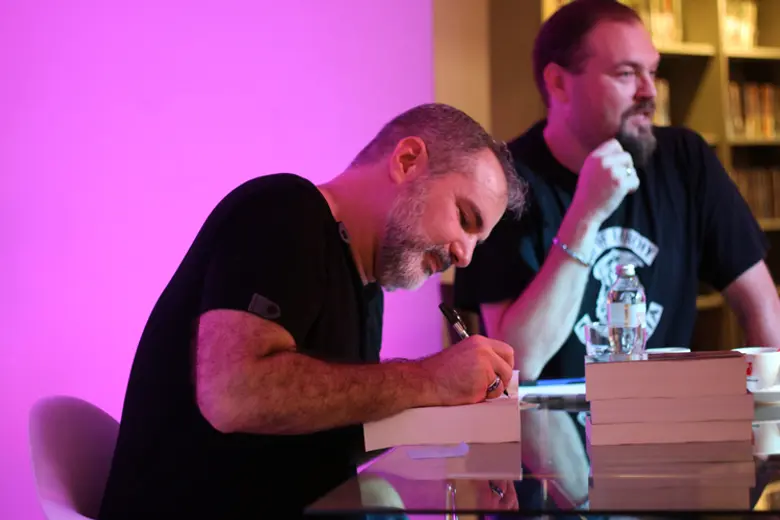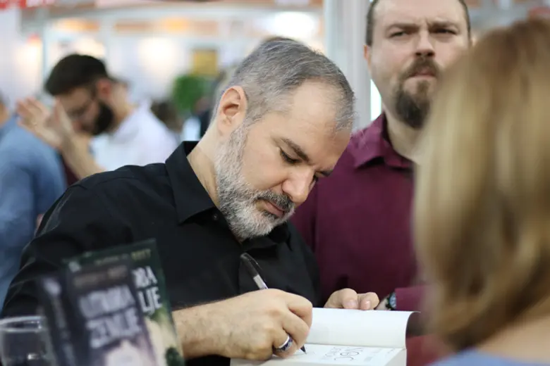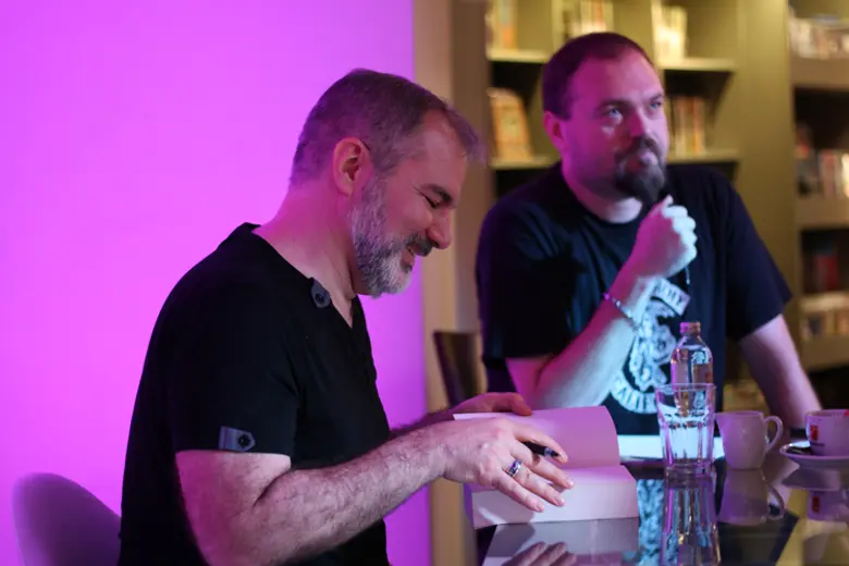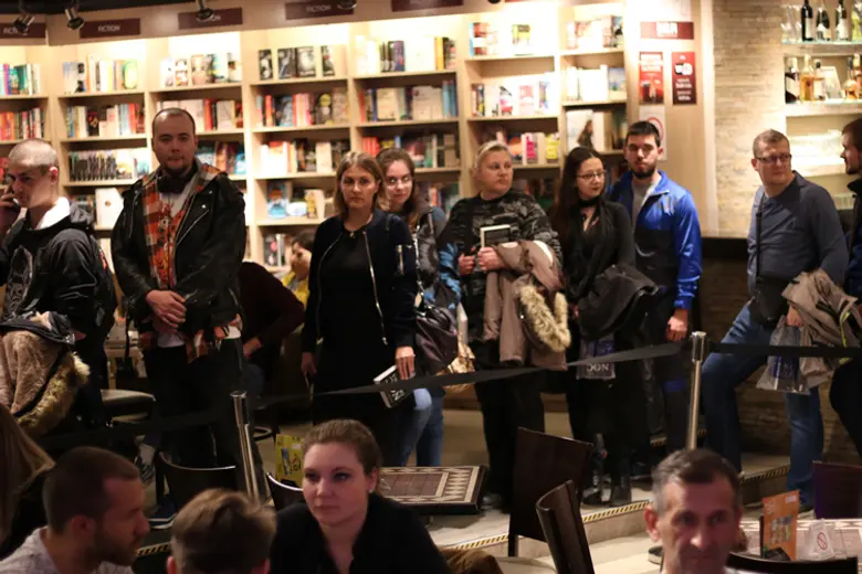 Upoznali smo pisca koji iskreno želi da upozna svoje fanove, potpiše sve primerke knjiga koje mu oni donesu, a nekima pokloni i suvenir. Rado se slikao sa njima, pričao, igrao se na kospleju, uživao.