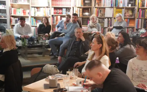Promocija knjige „Humano preseljenje“ Vide Crnčević Basare održana je u četvrtak 23. aprila u kafeteriji Bukmarker u knjižari SKC koja je bila ispunjena do poslednjeg mesta.