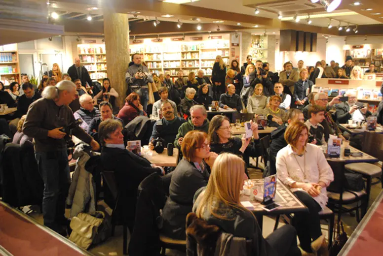 Svojim prepoznatljivim šarmom Ristovski je umeo da zabavi prisutne čitaoce koji su popunili knjižaru u SKC-u, među kojima su bili i brojni glumci, reditelji i ljudi iz ostalih sfera javnog života.