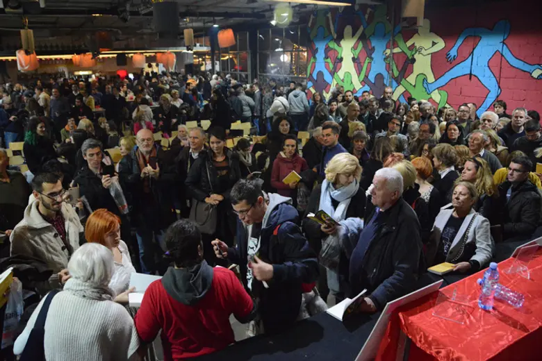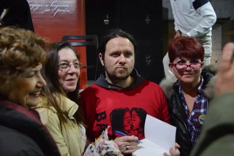 On se tokom večeri osvrnuo i na to da već mesecima ima probleme s organizacijom promocije u Srbiji, zahvaljujući tom prilikom „svim optimistima koji ga pozivaju da promoviše svoju knjigu“.