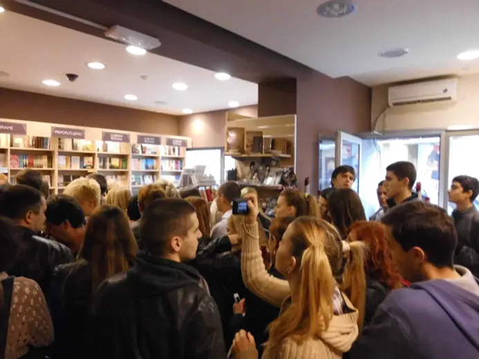 Među mnogobrojnim posetiocima bilo je fanova i iz Makedonije. Ono što je sve oduševilo u knjižari je prisustvo gospođe koja je sebe prepoznala na fotografiji u knjizi (sa bubnjarom Srbom bila je u istom odeljenju, te je na fotografiji gde ona i Srba sviraju harmoniku).