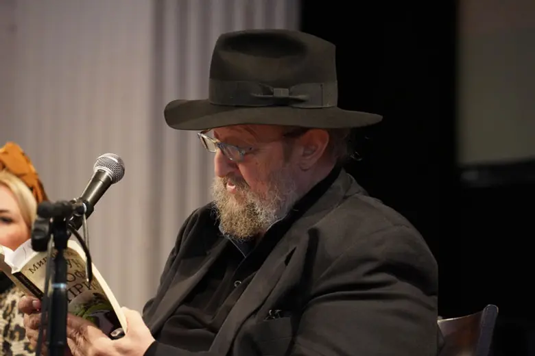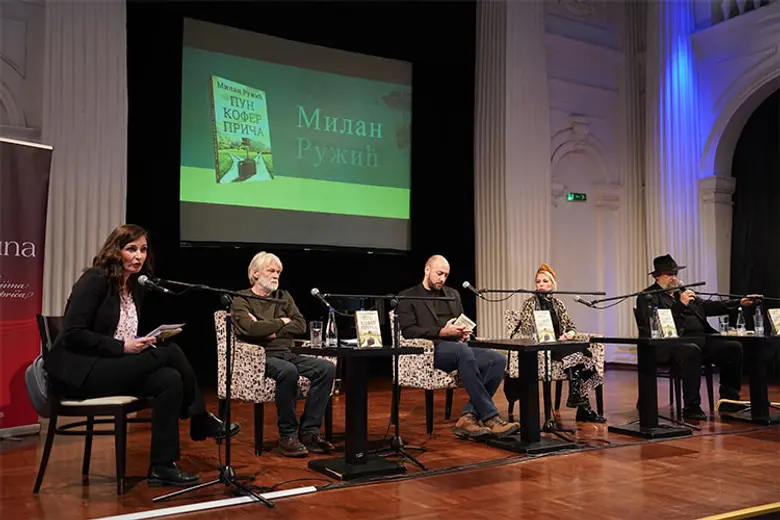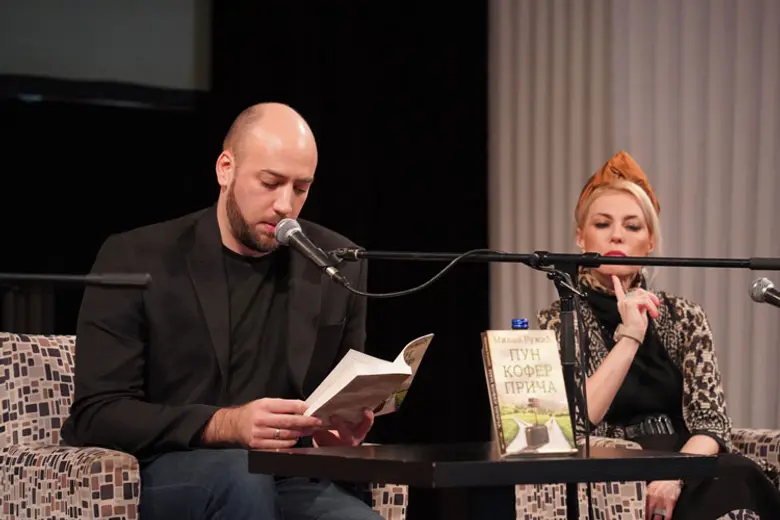 Pisac je pročitao dve priče iz svoje zbirke – „Ako imaš nekog koga nemaš“ koja otvara knjigu „Pun kofer priča“ i „Handke“, posvećena austrijskom nobelovcu Peteru Handkeu, zapravo preneto lično iskustvo pri upoznavanju sa slavnim piscem na Mećavniku kod Emira Kusturice.