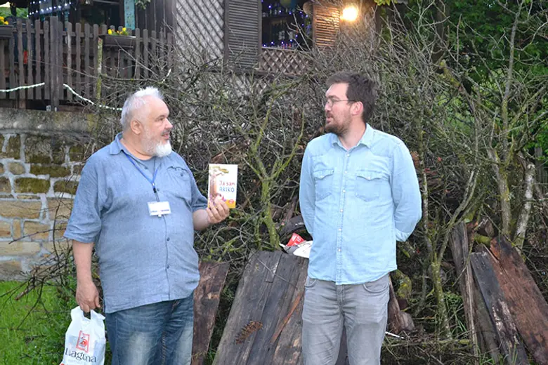 Druženje bibliotekara i pisaca nastavljeno je u prijatnoj atmosferi etno-sela, uz koktel, muziku i logorsku vatru.