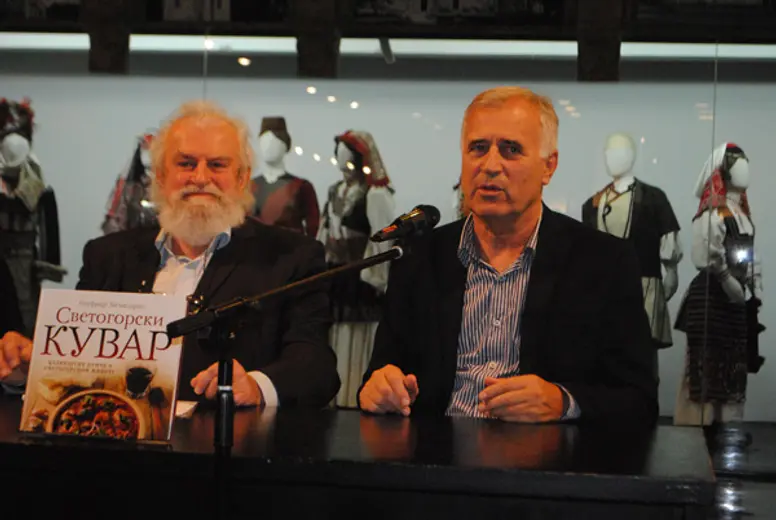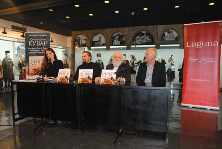 Autor, monah Onufrije je prema drevnoj monaškoj tradiciji ugostio posetioce promocije jelima spremljenim po receptima iz „Svetogorskog kuvara“.