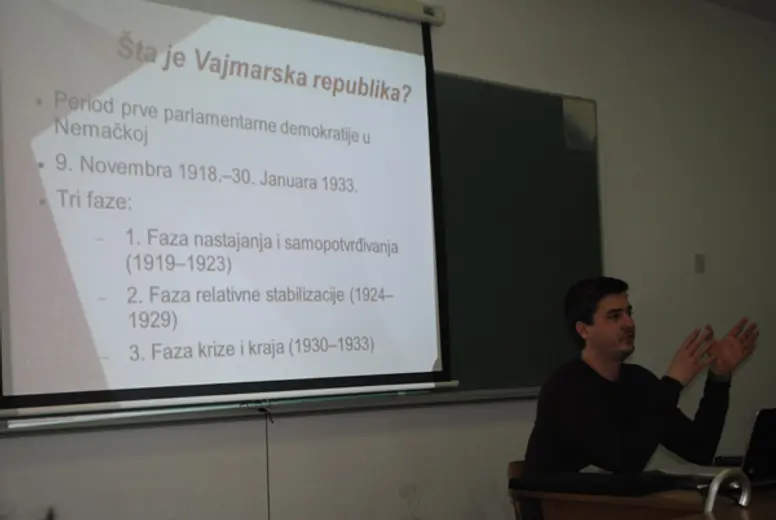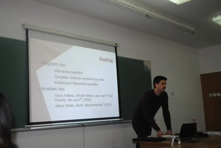 Ubrzanost ritma grada, istovremenost mnogih protivrečnosti, koje su karakteristične za urbani život, činili su Berlin veoma privlačnim i za umetnike. Zbog toga i ne čudi što je Berlin dvadesetih i početkom tridesetih godina prošlog veka bio mesto radnje, odnosno tema mnogih umetničkih ostvarenja kako na filmu (npr. Langov „M“ ili Rutmanov „Berlin – Simfonija velikog grada“) tako i u književnosti (najpoznatiji primer je bez sumnje Deblinov „Berlin Aleksanderplac“). Na predavanju su analizirani razliciti prikazi tog grada u dva romana Vajmarske republike: „Mali čoveče, šta sada?“ Hansa Falade i „Berlin Aleksanderplac“ Alfreda Deblina.
