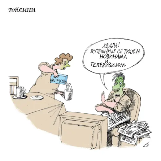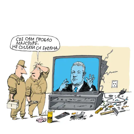 Petričićeve karikature podeljene su u dve celine: Mi i Oni. Oni su srpska politička estrada. Mi – deo sive srpske svakodnevice.