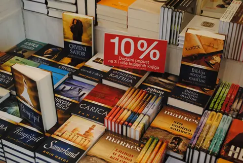 I u ovoj knjižari možete kupiti 3 knjige za 499 dinara kao i 3 knjige za 999 dinara. Pored toga veliki broj enciklopedija možete kupiti sa popustom od 50 odsto. Detalje o ovim akcijama pročitajte ovde.