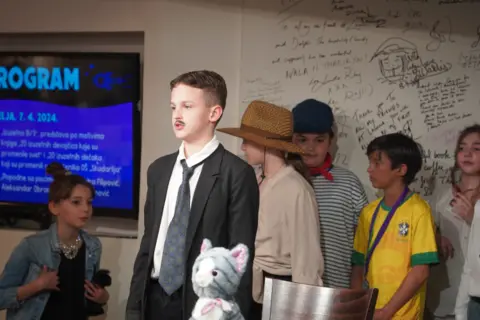 Nakon druženja sa čika Ršumom, odgledali smo predstavu naših drugara iz Dečjeg kulturnog centra „Nasmešite se, ptičica!“. Junaci ove priče su Anastas Jovanović i Milica Stojadinović Srpkinja, dve jake ličnosti, sa različitim pogledom na svet!