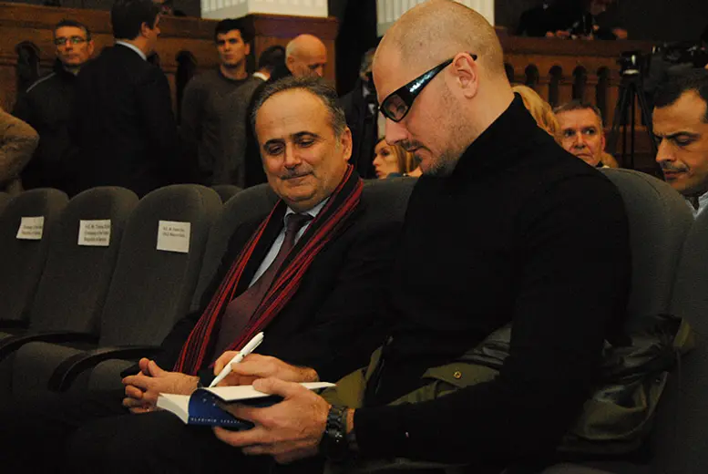 „Moji učitelji su i živeli na tom jeziku. Život se u tom jeziku desio se i meni u Mostaru, nepunih godinu dana nakon mog rođenja. Porodični mit o sinovljevom stasavanju kaže da je Bošnjak Tabašević Vladimir pričao sa nepunih godinu dana tečno kao tetka“, kazao je Tabašević. „U tom jeziku“, nastavio je, „posle mnogo godina ’vitak’ sam naleteo na Miloša Crnjanskog, video Momčila Nastasijevića... hvatao manijaka kako čačka ruže na grobu Vojislava Despotova i shvatao naposletku, jer je imenjaku Vladimiru Kopiclu tako dunulo, da se istorija ne ponavlja. Ova poimence i stihovima pomenuta četiri tela sede tamo gde su u ovoj sali bila predviđena mesta za članove moje najuže porodice. Mojih krvnih srodnika večeras ovde nema. Poreklom od rudara, pilota, taksista, zubara, partizana, Srba, Hrvata... posledica sam slepog usuda svakog člana te porodice ponaosob da jurca svim srcem za svojim za idealima. Toliko ludo, kao sebi u inat”, kazao je Tabašević.