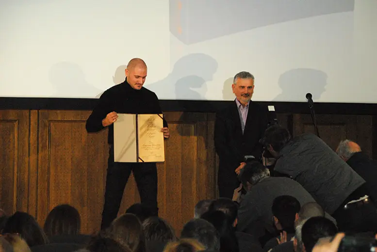 Nagrađeni pisac je najpre zahvalio svojim učiteljima koji su govorili i pisali jezikom kojem i sam pripada.