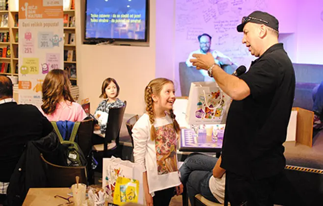 Svako njegovo druženje sa čitaocima, kako sa domaćim tako i sa onima van zemlje, jeste svojevrsni spoj književnog susreta, kreativne radionice i pozorišne predstave, umetničko-intelektualni performans koji uvek protiče u živoj, interaktivnoj atmosferi i potom se dugo pamti i prepričava.