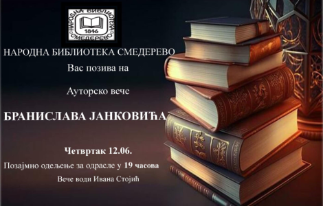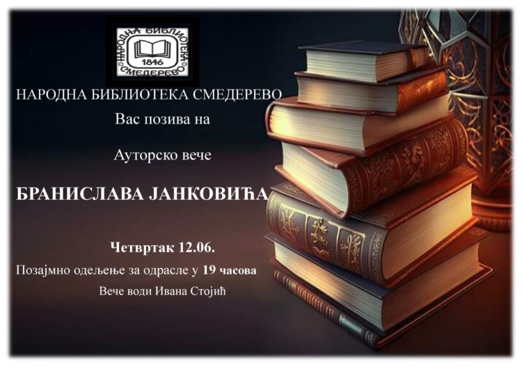 Poznati književnik, novinar i scenarista Branislav Janković predstaviće svoje literarno stvaralaštvo u Narodnoj biblioteci Smederevo, u četvrtak 12. juna od 19 sati.