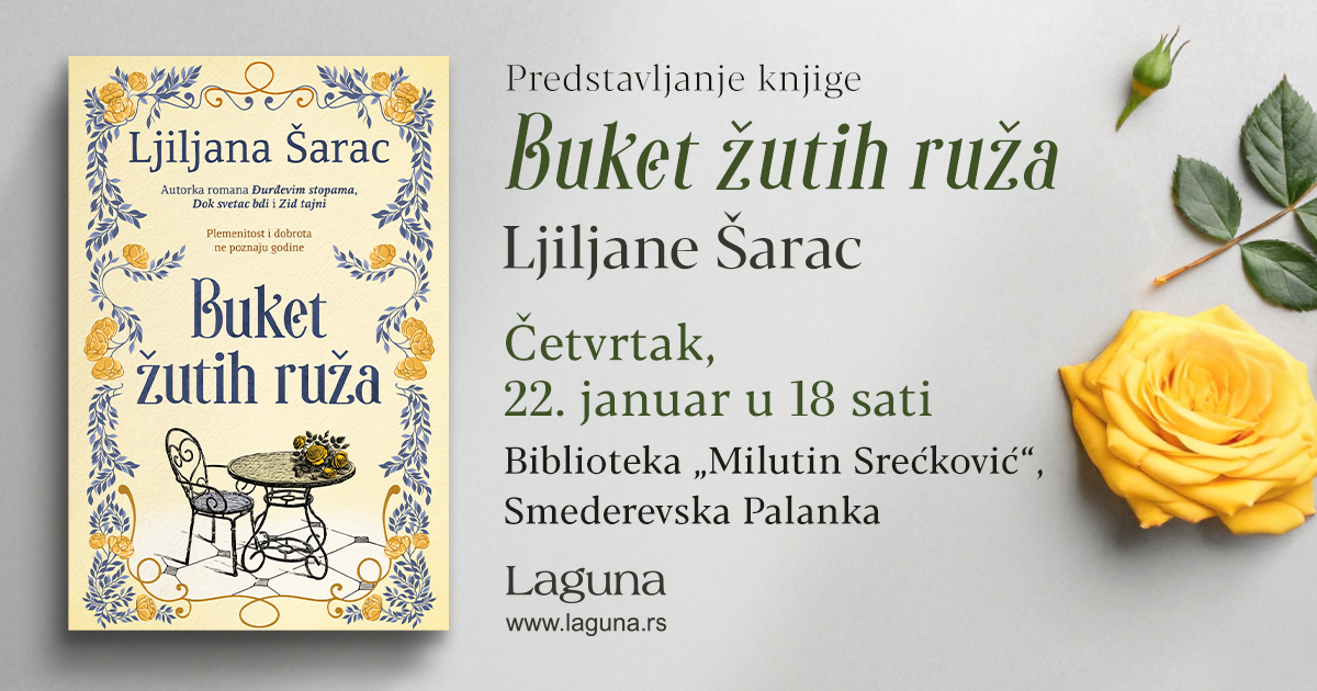 Laguna - Bukmarker - „Buket žutih ruža“ zamirisaće i u 2026. godini! Promocija u Smederevskoj Palanci 22. januara - Knjige o kojima se priča