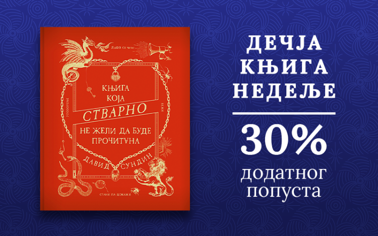 Iskoristite priliku ove nedelje: uz sve popuste koje uživate kao naš član (članski, dodatni od 10% za kupovinu tri ili više knjiga), dobićete i ovaj specijalni popust ukoliko knjigu naručite sa našeg sajta ili je kupite u nekom od naših klubova čitalaca u Srbiji, i to samo tokom trajanja akcije.