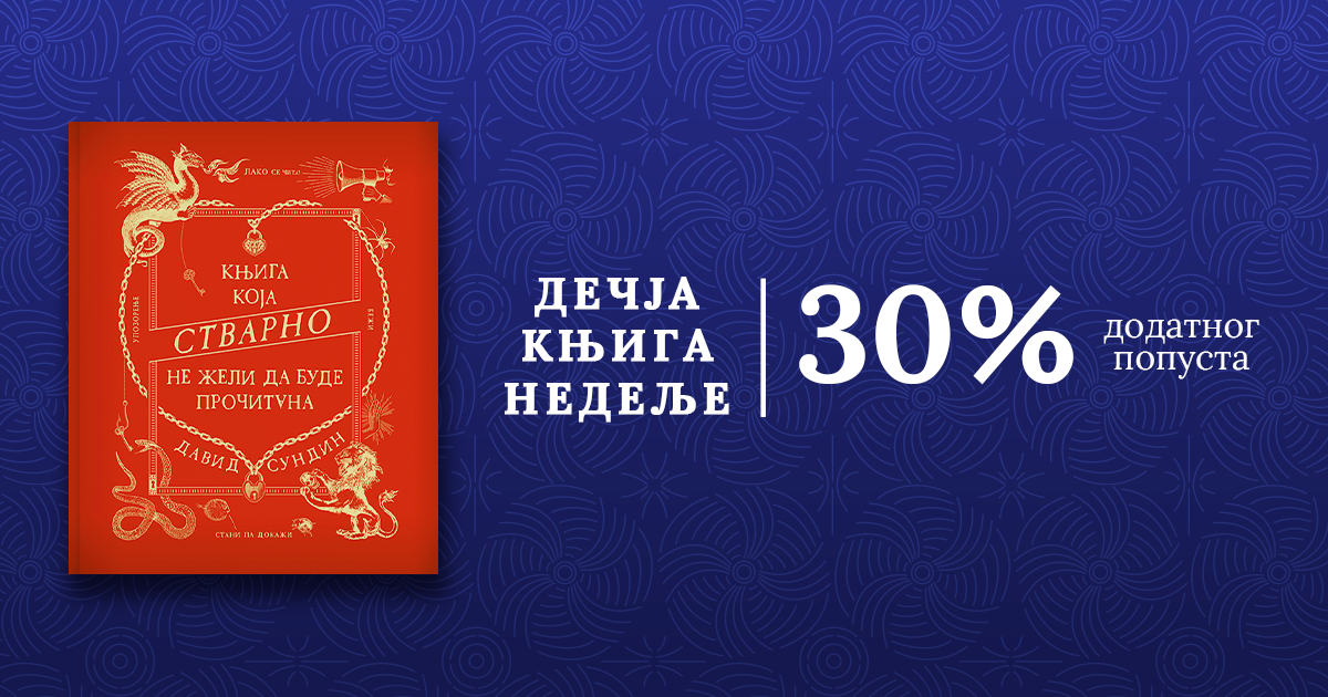 Za svoje članove Laguna uvek ima dobre vesti! Svake nedelje jedan od aktuelnijih naslova proglašavamo za Dečju knjigu nedelje. To znači da će naši članovi samo te nedelje moći da kupe Dečju knjigu nedelje sa specijalnim DODATNIM popustom od 30%.