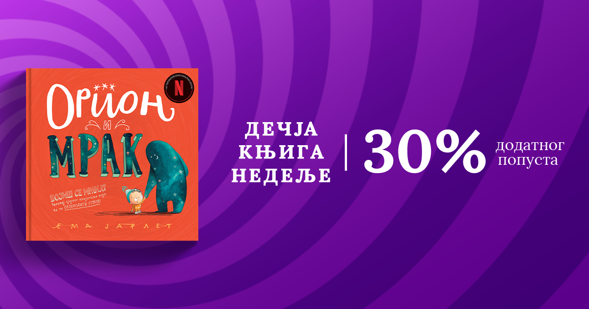 Iskoristite priliku ove nedelje: uz sve popuste koje uživate kao naš član (članski, dodatni od 10% za kupovinu tri ili više knjiga), dobićete i ovaj specijalni popust ukoliko knjigu naručite sa našeg sajta ili je kupite u nekom od naših klubova čitalaca u Srbiji, i to samo tokom trajanja akcije.