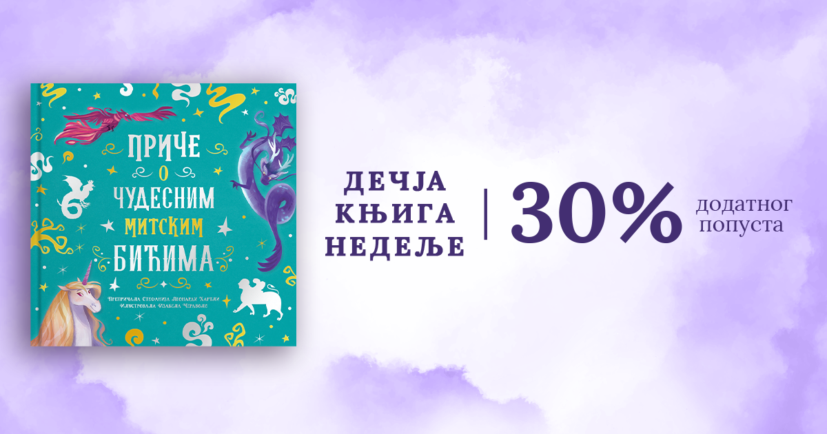 Iskoristite priliku ove nedelje: uz sve popuste koje uživate kao naš član (članski, dodatni od 10% za kupovinu tri ili više knjiga), dobićete i ovaj specijalni popust ukoliko knjigu naručite sa našeg sajta ili je kupite u nekom od naših klubova čitalaca u Srbiji, i to samo tokom trajanja akcije.