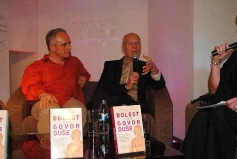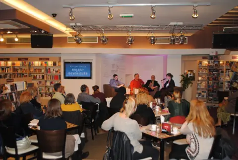 U prepunoj Delfi knjižari Ridiger Dalke je puna 2 sata sa zadovoljstvom pričao o knjizi i odgovarao na pitanja mnogobrojnih zainteresovanih posetilaca.