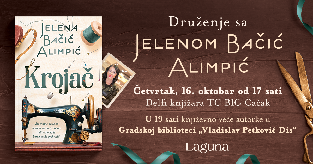 Laguna - Bukmarker - Druženje sa Jelenom Bačić Alimpić u novoj Delfi knjižari u TC BIG Čačak i književno veče u Gradskoj biblioteci - Knjige o kojima se priča