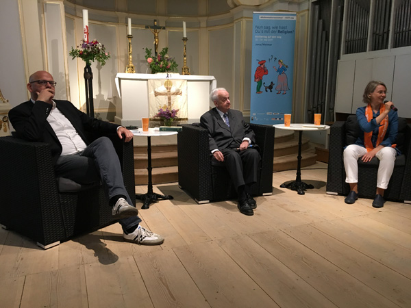 U Crkvi Svetog Jakoba, ispunjenoj do poslednjeg mesta, Ivanji je zajedno sa Rikolom Gunarom Rikenauom, zamenikom direktora Memorijalnog centra Buhenvald, i Ulrikom Grajm, poverenicom za medije nemačke Evangeličke crkve, diskutovao na temu „Gde je Bog bio u Buhenvaldu“.