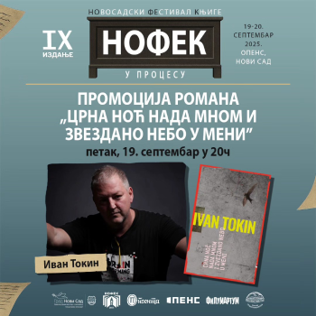 U okviru 9. Novosadskog festivala knjige NOFEK, koji će se održati 19. i 20. septembra u prostoru OPENS-a, svoj novi roman „Crna noć nada mnom i zvezdano nebo u meni“ predstaviće i Ivan Tokin.