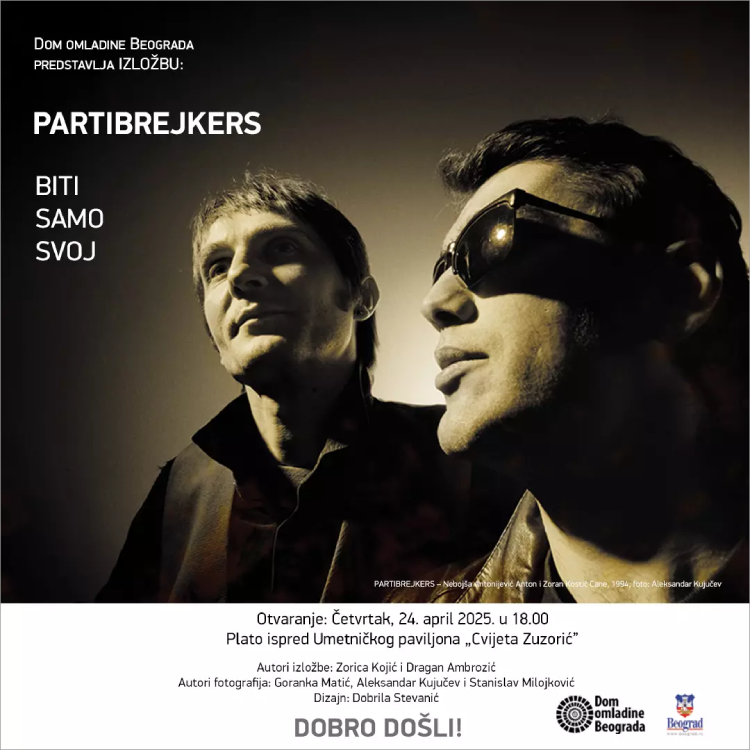 Izložba „Partibrejkers – biti samo svoj“ Zorice Kojić i Dragana Ambrozića biće otvorena 24. aprila, na Platou ispred Umetničkog paviljona „Cvijeta Zuzorić“ na Kalemegdanu.