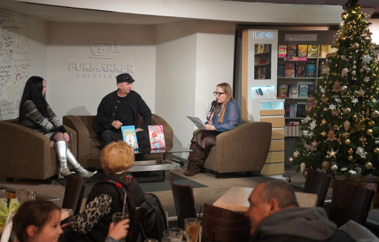 Ane Grigorjev, kojoj Uroš daje potpunu slobodu prilikom oslikavanja njegovog književnog sveta. „Priča je osnova svega i ne bi došlo do bilo kakve ilustracije da nema inspirativne priče. Prvo me povuče atmosfera knjige i onda je gradim od prve do poslednje scene i zato nisam spremna da bilo šta pokazujem pre nego što skroz završim, zato što prva i poslednja scena uvek budu u istoj fazi rada. U ovoj knjizi mi je bilo interesantno što priroda i likovi dišu zajedno. Trudila sam se da prikažem ono što je nevidljivo, i miris, i ukus, i vetar, i svetlucanje, da se sve to oseti kroz sliku“, rekla nam je Ana, koja je ovom prilikom predstavila i svoju knjigu za decu – četvrtu iz serijala „Srećne porodice“. „Ovaj serijal knjiga je nastao od ilustracija. A onda sam napisala i priče, jer su to sve moje emocije i moji događaji iz života. Nadam se da se oseća moja iskrenost. To su tople ljudske priče, ali i most između ljudskog i životinjskog sveta, jer životinje su glavni junaci. Trudila sam se da to prikažem pitko i da u ljudima probudim potrebu da beleže i pamte svakodnevne situacije, koje su najdragocenije, a često ih uzimamo zdravo za gotovo.“