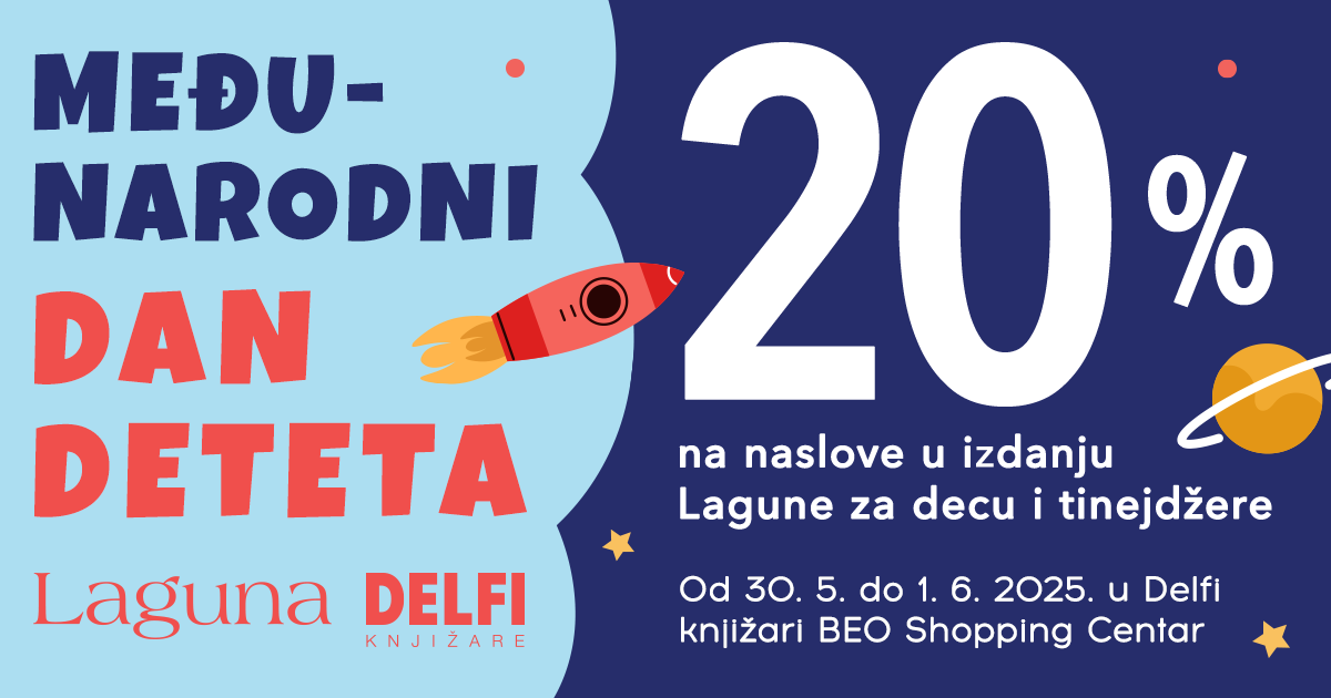 Povodom Međunarodnog dana deteta od 30. maja do 1. juna 2025. u Delfi knjižari BEO Shopping Centar važiće 20% popusta na naslove u izdanju Lagune za decu i tinejdžere.