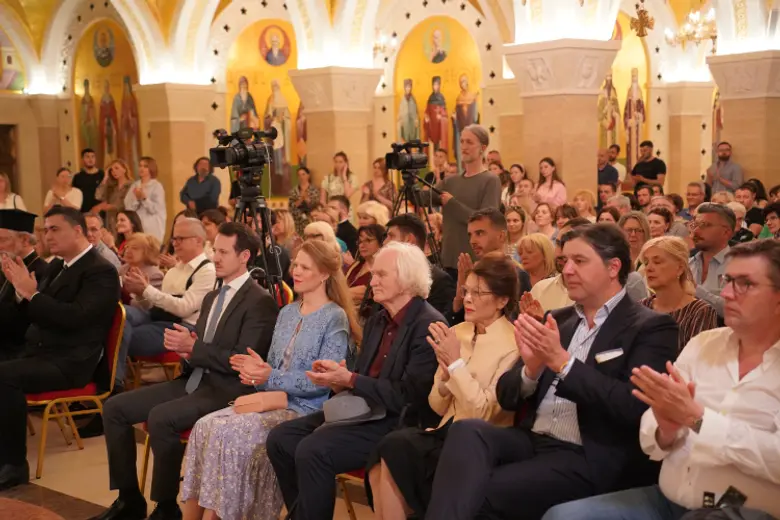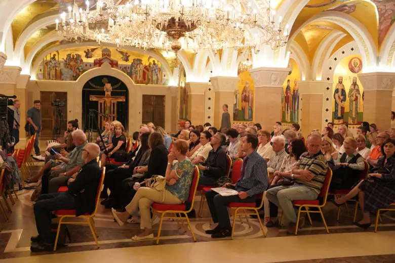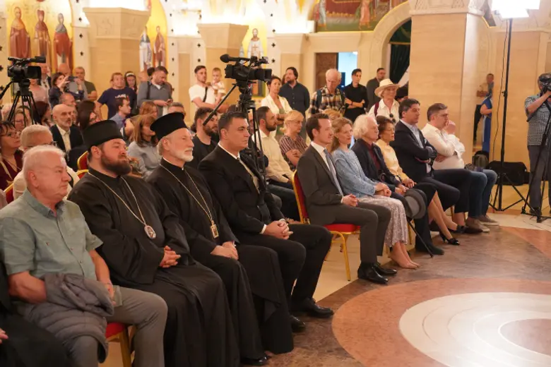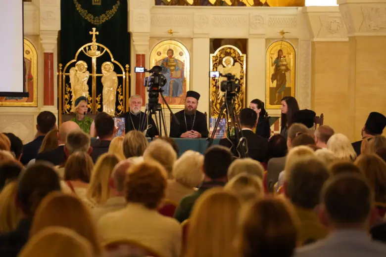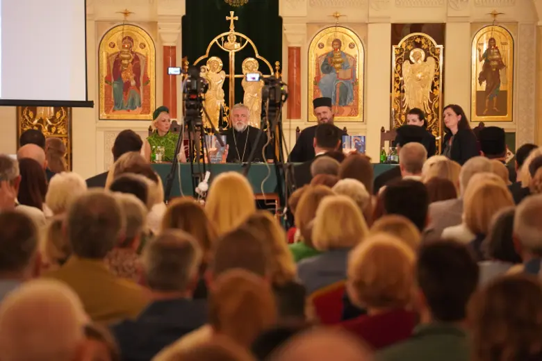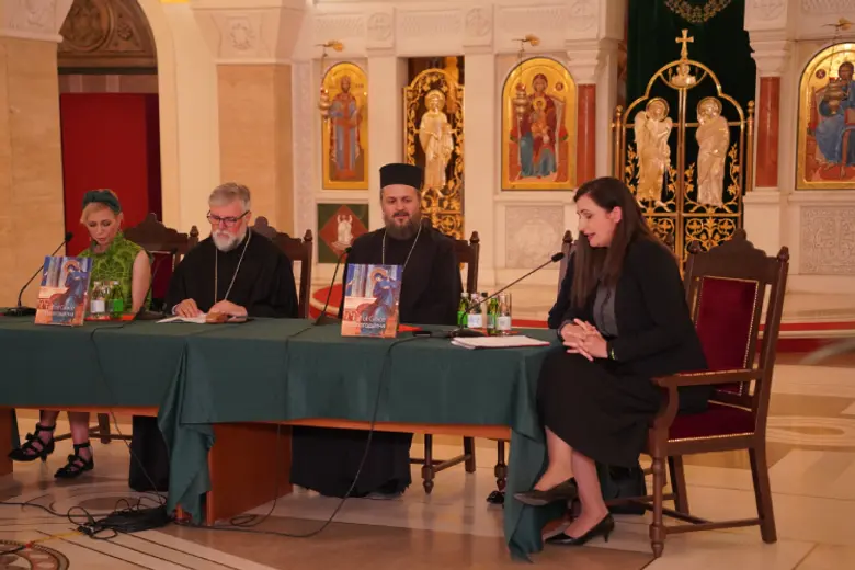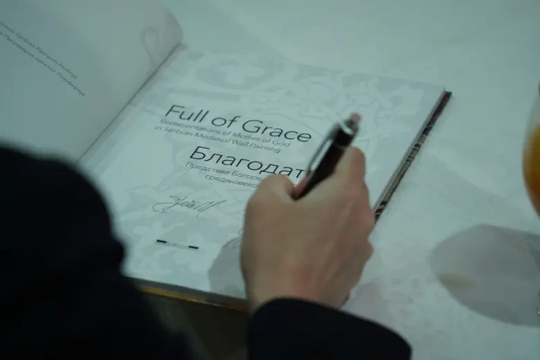 U prepunom prostoru Kripte, o knjizi su govorili episkop diseldorfski Grigorije, episkop zapadnoamerički Maksim, Ivana Lemkul, istoričarka umetnosti, i Dubravka Dragović Šehović, urednica izdanja.