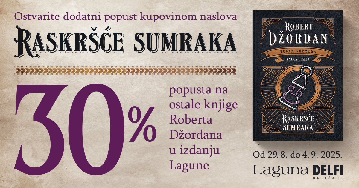 Iskoristite sjajnu priliku da kupovinom naslova „Raskršće sumraka“ ostvarite 30% popusta na ostala dela velikog pisca u izdanju Lagune.