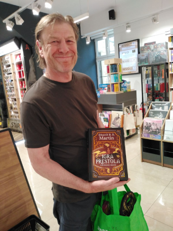 Džordža R. R. Martina. Bin je posetio Noć knjige i tom prilikom oduševio brojne čitaoce i svoje fanove u Laguninoj knjižari ,,Borislav Pekić“ u Knez Mihailovoj. Nije krio iznenađenje što su ga prepoznali mnogobrojni posetioci, a od Lagune je dobio na poklon roman našeg nobelovca