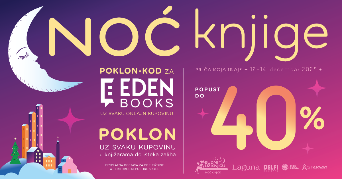 Uzbuđenje je u vazduhu jer se bliži još jedna Noć knjige i prilika da podelimo radost čitanja sa drugima. Od 12. do 14. decembra 2025. godine, 33. Noć knjige će se održati u knjižarama Delfi i Laguninim klubovima čitalaca, na 68 lokacija u 37 gradova u Srbiji i regionu, kao i na sajtovima laguna.rs, delfi.rs i dicearena.rs.