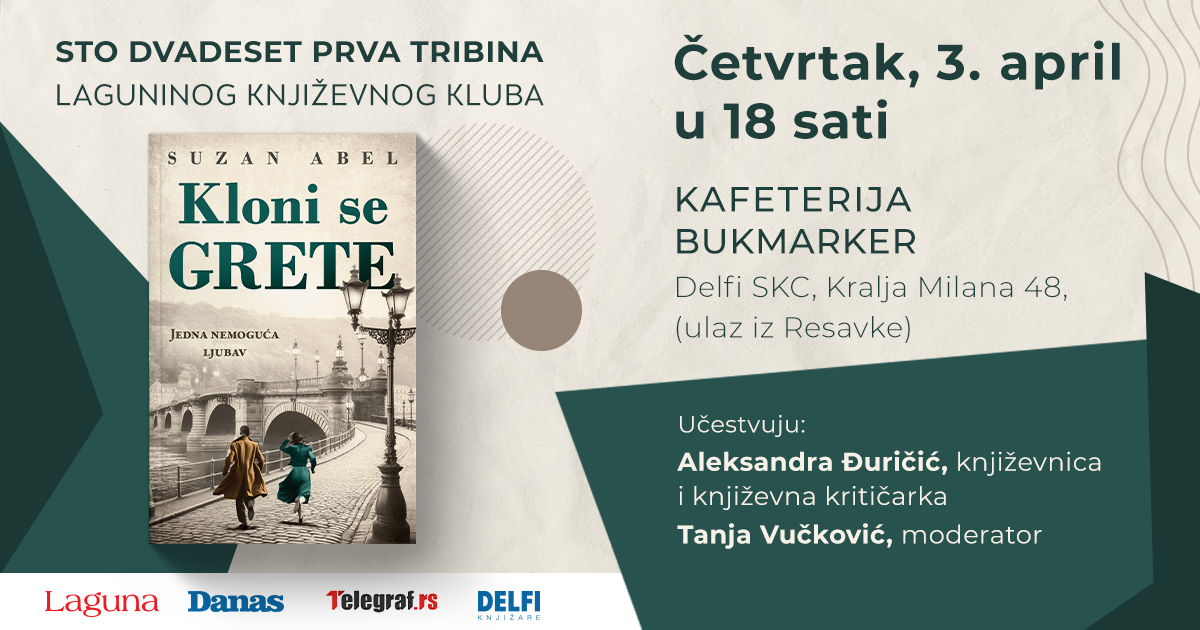 Roman „Kloni se Grete: Jedna nemoguća ljubav“, u prevodu Dušice Milojković, na popustu je 30% do 3. aprila 2025. u svim Laguninim klubovima čitalaca, Delfi knjižarama i na sajtu laguna.rs.