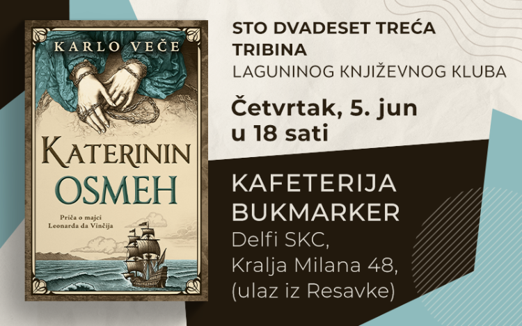 Roman „Katerinin osmehKarla Večea biće tema 123. tribine Laguninog književnog kluba koja će održati u četvrtak 5. juna u kafeteriji Bukmarker u knjižari Delfi SKC.