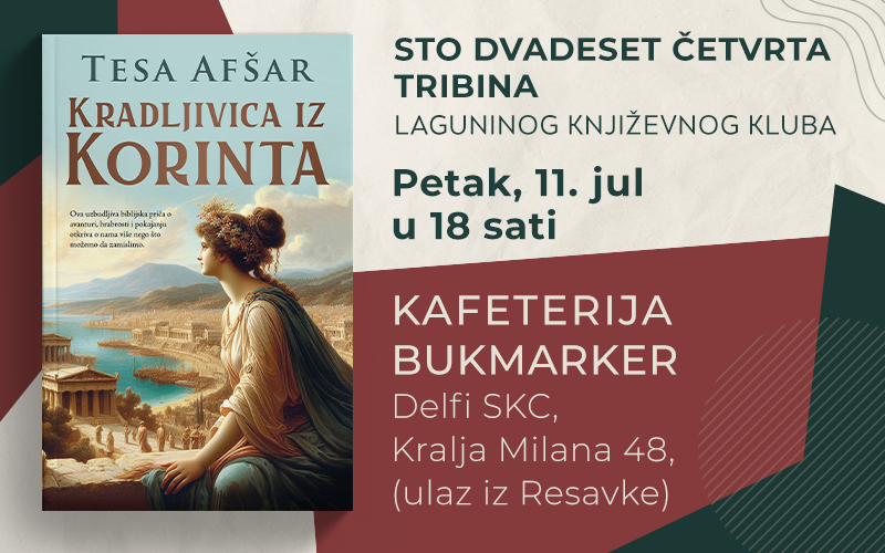 Tribina Laguninog književnog kluba, koja je trebalo da bude održana 4. jula, pomera se za petak 11. jula u 18 sati u kafeteriji Bukmarker u knjižari Delfi SKC.